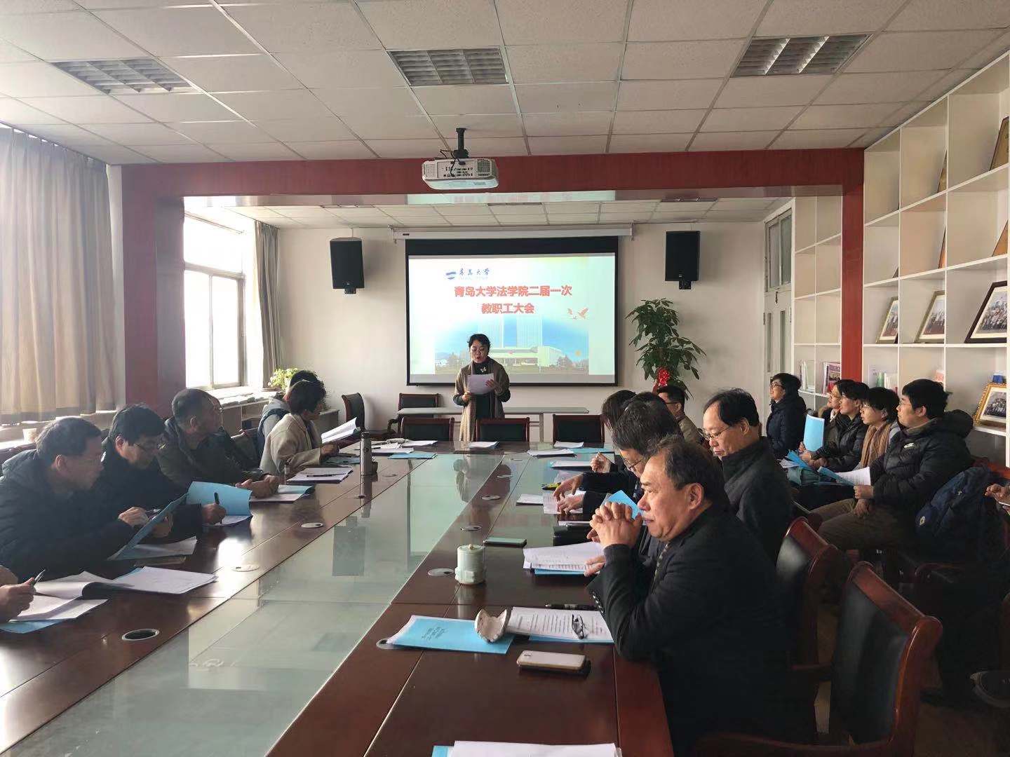 首先,大会听取了蔡颖雯经理代表院领导班子所作的题为《不忘初心,奋发进取,推进太阳成集团tyc234cc古天乐跨越式发展》的工作报告。2019年,太阳成集团tyc234cc古天乐坚持以习近平新时代中国特色社会主义思想为指导,深入学习贯彻党的十九大、十九届四中全会精神,认真学习领会校第三次党代会提出的“一三五五十”总体布局和双代会精神,围绕确定的工作目标及中心任务,坚持立德树人,开拓创新,培养卓越法治人才,推进太阳成集团tyc234cc古天乐跨越式发展。蔡经理从团队建设、人才培养、科研成果、国际国内学术交流、办学资源整合等方面回顾了学院2019年取得的成绩,并阐述了2020年学院的工作目标和计划。