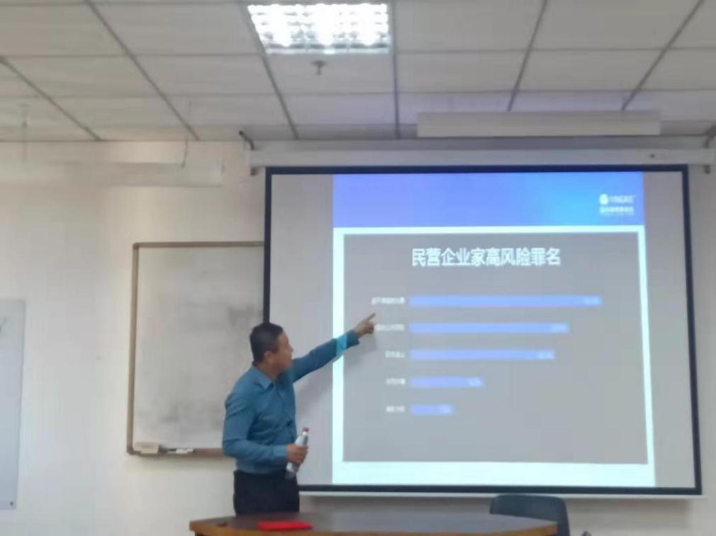 崔律师首先以企业家犯罪案件数量及增长的原因、涉案企业家的职务、民营企业家所可能触犯的罪名三方面内容,介绍了当前企业可能面临的刑事法律风险较高的现状。针对民营企业家可能面临的高风险罪名,如:虚开增值税发票、职务侵占及非法集资行为进行了深入的说明,并提出了防范刑事法律风险的事前预防、事中控制及事后补救措施等。