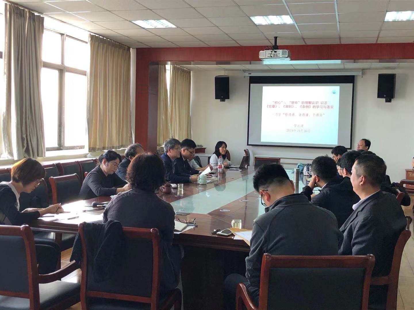 2019年10月31日下午,在睿思楼523会议室,太阳成集团tyc234cc古天乐举办了“不忘初心、牢记使命”主题教育专题党课,党委书记管永建以《“初心”、“使命”的理解认识以及<党章>、<准则>、<条例>的学习与落实——力求“悟得透、讲得清、干得实”》为题,为全院教工党员讲授专题党课。