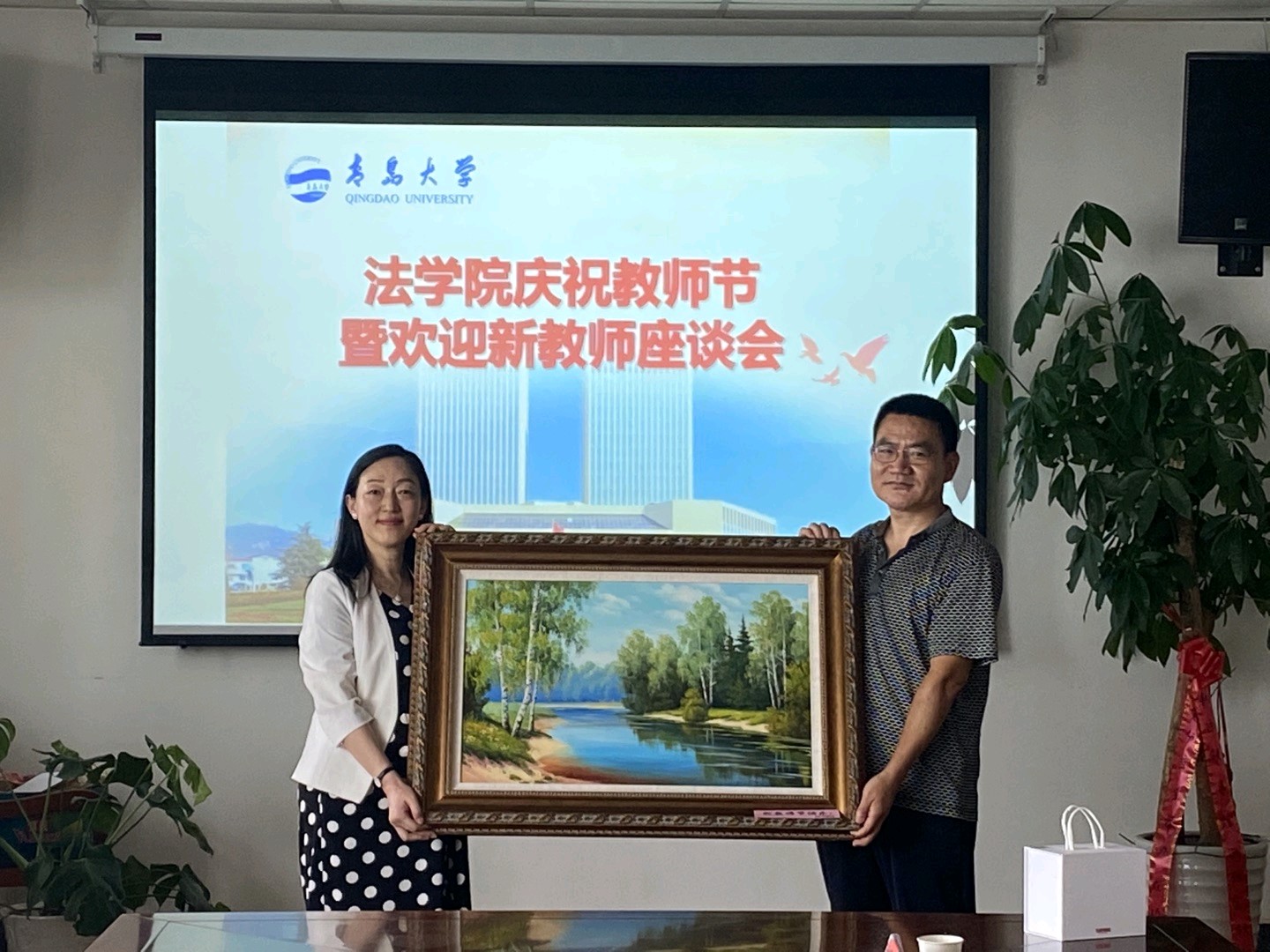 最后,学院领导为新入职教师颁发了纪念品。德衡律师事务所代表向学院赠送了油画和《中华人民共和国民法典》。座谈会在欢乐、融洽的氛围中圆满结束。