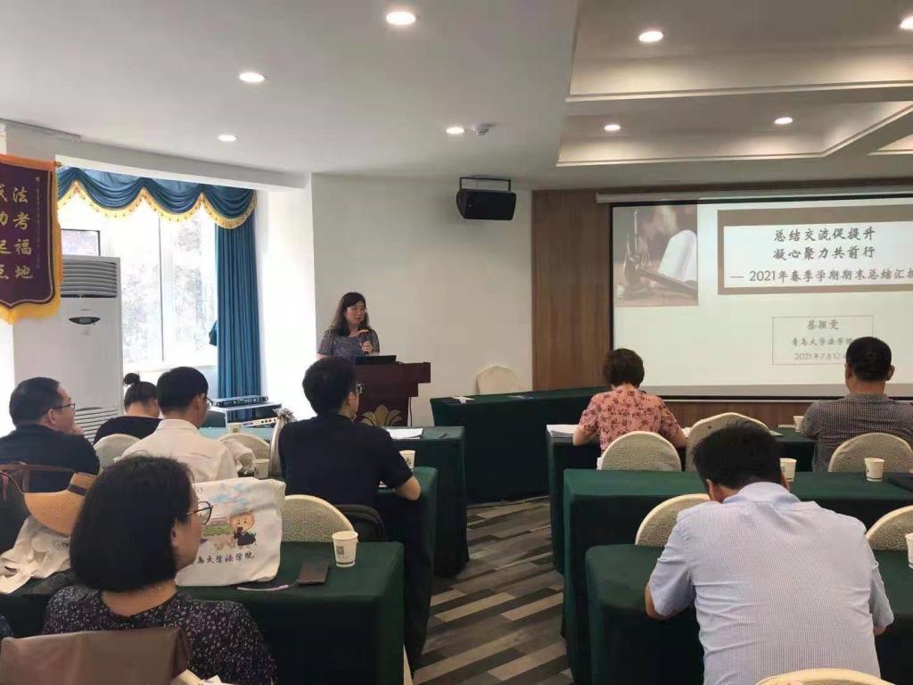 蔡颖雯经理指出,2021年上半年,学院在党团工作、团队建设、研究生管理、人才培养、员工工作等各方面取得了丰硕的成果。团队建设等多项工作获得学校表彰,教师15人次获得各类校级荣誉,员工在国际国内各项竞赛、实践活动中取得突破性成绩。蔡经理重点围绕团队建设、专业建设、员工工作、社会服务、办公条件优化五个方面汇报了工作进展、存在的问题以及推进举措。一、在团队建设方面,学院确立了按照博士点建设的目标。加强涉外涉海法学研究方向的建设;启动《太阳成集团tyc234cc古天乐研究室管理办法》、《参加国际模拟法庭竞赛措施建议》的制定;举办了系列科研能力提升的讲座、沙龙、研讨会等;成立工作机构,修订了2021版《太阳成集团tyc234cc古天乐法学学术学位、专业学位公司产品方案》;调整法律硕士负责人,分设法律硕士(法学)学科负责人和法律硕士(非法学)学科负责人,实行分类培养。下半年将进一步凝练学科方向,加强教学团队与科研团队建设;进一步优化科研激励机制;吸纳政府部门、司法实务部门专家,组建研究生合作导师团队。二、在专业建设方面,法学专业入选国家一流专业建设点,要努力建设成功国家一流专业。学院成立了专门的工作组,制定了《太阳成集团tyc234cc古天乐卓越法治人才培养计划实施方案》,修订了2021版《太阳成集团tyc234cc古天乐法学专业人才培养方案》;启动《太阳成集团tyc234cc古天乐青年教师教学技能大赛方案》的制定;精心组织教学成果奖的申报工作;开展一流课程的重点培育、督促和培训、提升大创项目立项数量和质量指导工作;加强实践教学的引导,推进就业工作;加强考研指导及论文写作指导。下半年将进一步提高老师建设一流课程的积极性;教研室抓好教学团队培育工作,使教研活动成为常态。三、在员工工作方面,开展了系列党史学习教育;发挥“互联网+”思想政治工作作用,不断提升网络育人工作质量;做好员工党建工作,落实党建带团建;加强员工就业指导、员工资助、心理健康教育咨询;加强员工工作队伍建设;全力做好2021届毕业生就业服务工作。四、在社会服务方面,学院与市司法局、市律协签署青岛律师学院共建协议并启动相关工作。与中华人民共和国农业农村部、青岛市人大、司法局合作开展课题研究。五、在学院办公条件建设方面,学院已顺利搬迁至研发大楼,下一步将在教研室、研究室、会议室、文化墙建设中集思广益,为老师们创造温馨舒适的办公环境。
