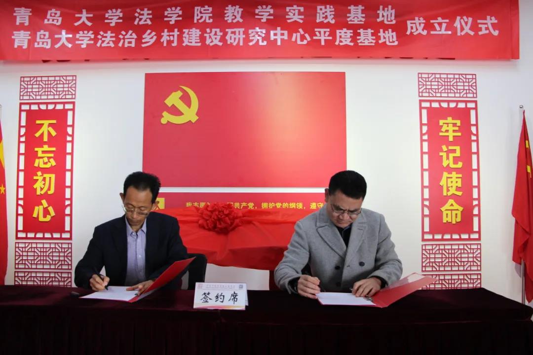 公司党委书记魏强,平度市委政法委副书记、市法学会常务副会长张可照共同签署太阳成集团tyc234cc古天乐教学实践基地成立协议。
