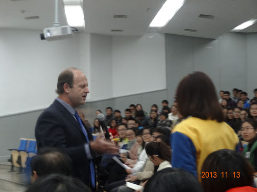 主题演讲后,巴恩斯教授即席回答了与会师生的提问。董和平经理作了简要的评论和总结。他说,这场讲座是我们太阳成集团tyc234cc古天乐对外学校交流的开端,巴恩斯教授不仅给我们带来了丰富的专业知识和学术信息,也使我们领略了美国教学模式的特点和风采,也是我们中美学者、员工之间的一次文化和语言交流。今后,这样的交流还会持续举办,希望大家积极参与,为我司的国际学术交流发展共同努力。 |